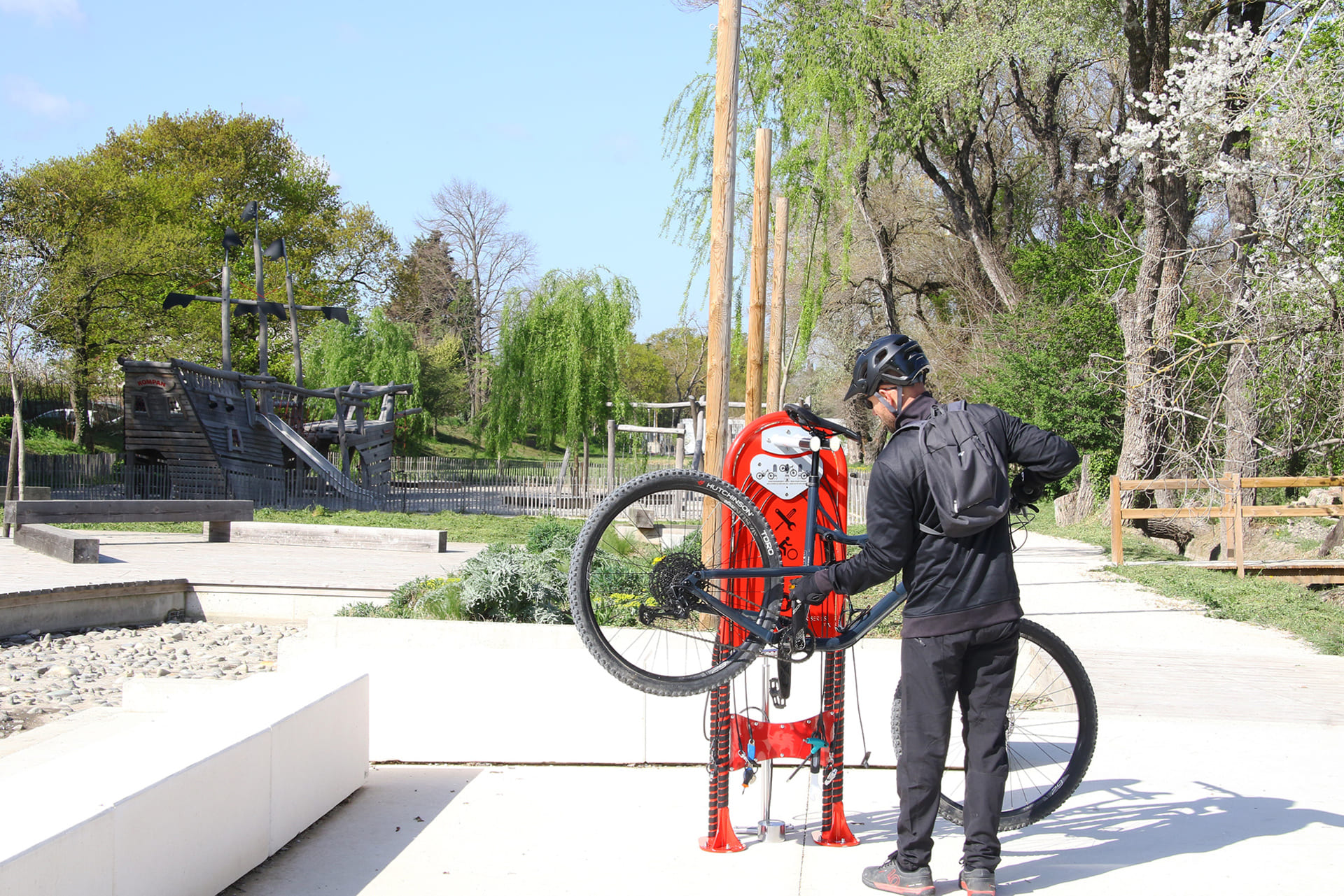 Une station en libre-service dédiée à l'entretien, la réparation et au gonflage de tous types de vélos.